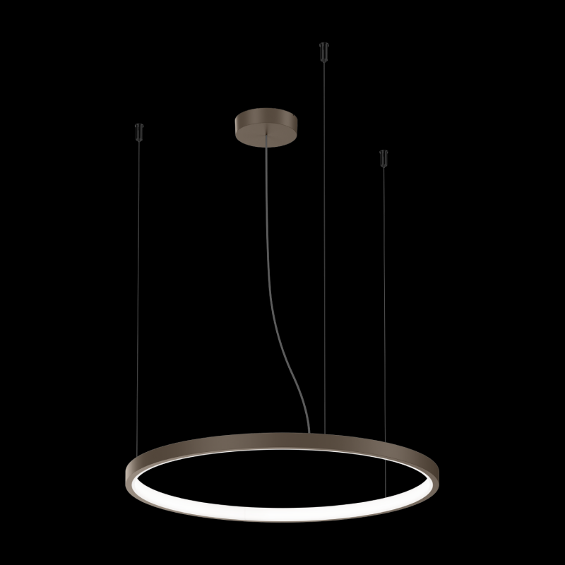 Luminaire suspendu circulaire en aluminium moulé sous pression avec suspension de câble réglable max. 4000 mm et cache-piton en noir de sécurité surface bronze peinture humide , mate lisse RAL 7013 couvercle en silicone PCB 3-step binning