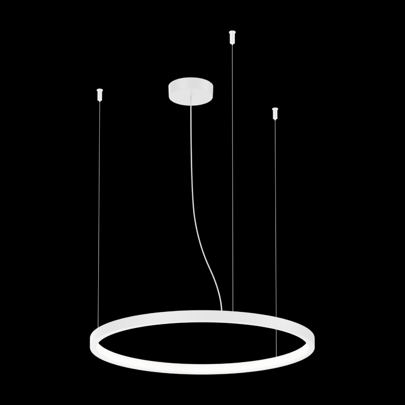Luminaire suspendu circulaire en aluminium moulé sous pression avec suspension de câble réglable max. 4000 mm et cache-piton en blanc pur surface blanc mat revêtement par poudre , structure de surface mate RAL 9010 couvercle en silicone PCB