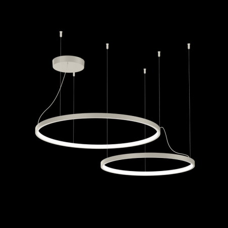 2 corps de luminaire suspendus circulaires en aluminium moulé sous pression avec suspension de câble réglable max. 4000 mm et cache-piton en noir de sécurité couvercle en silicone PCB 3-step binning coupure de phase dim couleur de lumière 2