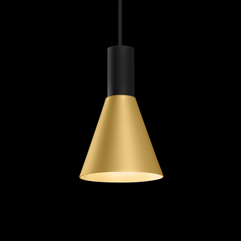 Luminaire suspendu en aluminium surface en Noir mat Doré peinture humide structure de surface mate avec suspension de câble réglable max. 4000 mm en noir de sécurité culot GU10 type de lampe PAR16 max. 12W 18 V indice de protection IP20 C