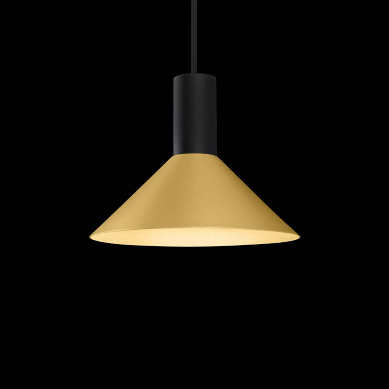 Luminaire suspendu en aluminium surface en Noir mat Doré peinture humide structure de surface mate avec suspension de câble réglable max. 4000 mm en noir de sécurité culot GU10 type de lampe PAR16 max. 12W 18 V indice de protection IP20 C