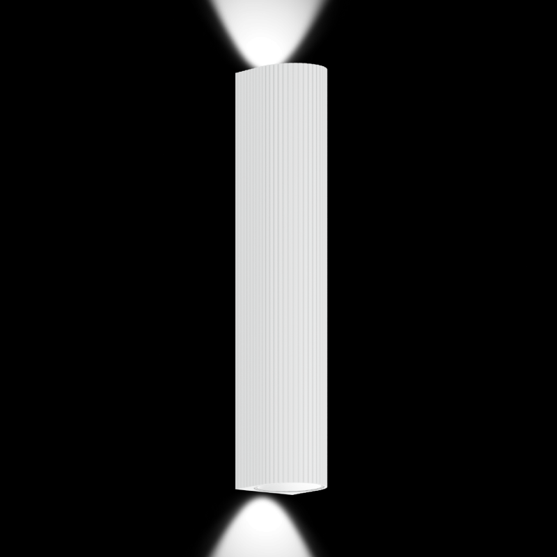 Luminaire mural en saillie en aluminium surface en Blanc mat revêtement par poudre structure de surface mate RAL 9010 émission de lumière vers le haut et vers le bas avec technologie COB Chip on Board pour une efficacité maximale coupure de