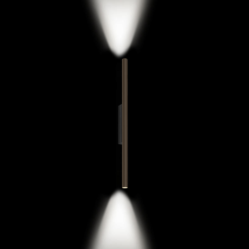 Luminaire mural en saillie tubulaire en aluminium RAL 7013 émission de lumière vers le haut et vers le bas avec technologie COB Chip on Board pour une efficacité maximale coupure de phase dim couleur de lumière 3000 K 2 SDCM initial MacAdam