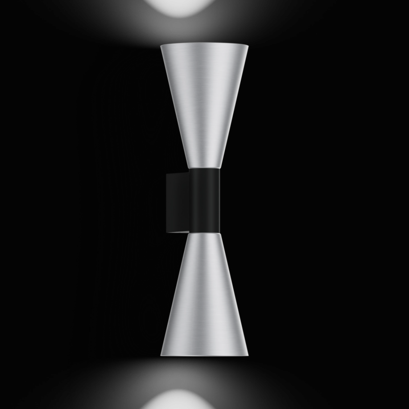 Luminaire mural en saillie en aluminium moulé sous pression surface en Black Matt Aluminium Brushed peinture humide structure de surface mate émission de lumière vers le haut et vers le bas culot GU10 type de lampe PAR16 max. 12W 100 - 240 V