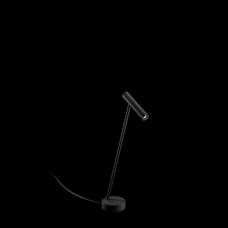 Luminaire de table en aluminium surface noir mat revêtement par poudre , structure de surface mate RAL 9011 avec technologie COB Chip on Board pour une efficacité maximale couleur de lumière 2700 K CRI 90 angle de diffusion 30 tête de spot