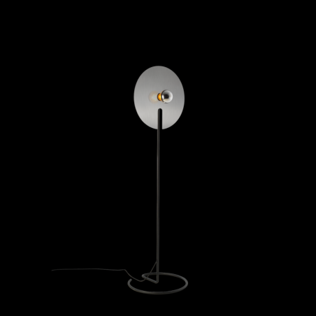 Lampadaire en aluminium surface en Black Matt Aluminium Brushed revêtement par poudre structure de surface mate No matching RAL abat-jour panneau composite en aluminium réfléchissant sur une face câble textile noir avec fiche et interrupteu