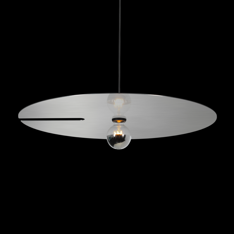 Luminaire suspendu rond en aluminium surface en Black Matt Aluminium Brushed revêtement par poudre structure de surface mate No matching RAL abat-jour panneau composite en aluminium réfléchissant sur une face culot E27 type de lampe A60 m