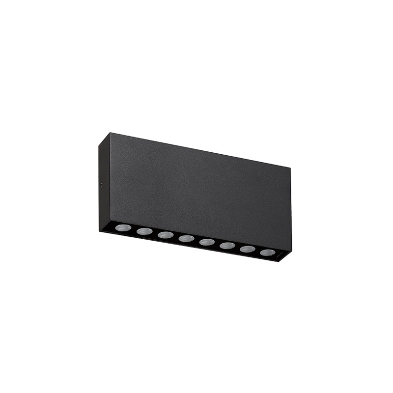 Applique murale pour éclairage extérieur.Diffuseurs en verre sérigraphié noir.Faisceaux asymétriques.Eclairage direct/indirect.Convertisseur non dimmable intégré dans lappareil.