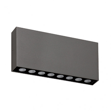 Applique murale pour éclairage extérieur.Diffuseurs en verre sérigraphié noir.Faisceaux asymétriques.Eclairage direct/indirect.Convertisseur non dimmable intégré dans lappareil.