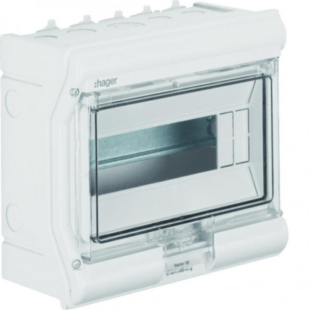Marque: HagerRéférence: VE110PNEAN: 3250616450332Emballage: 1Description: Coffret étanche vector IP65 1R. 10MOD. - pour l'extérieur