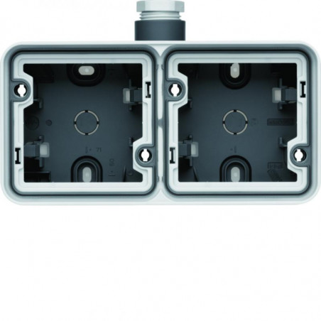 Description: Boîte double horizontale cubyko, grise, 1 x entrée simple + PE-M20