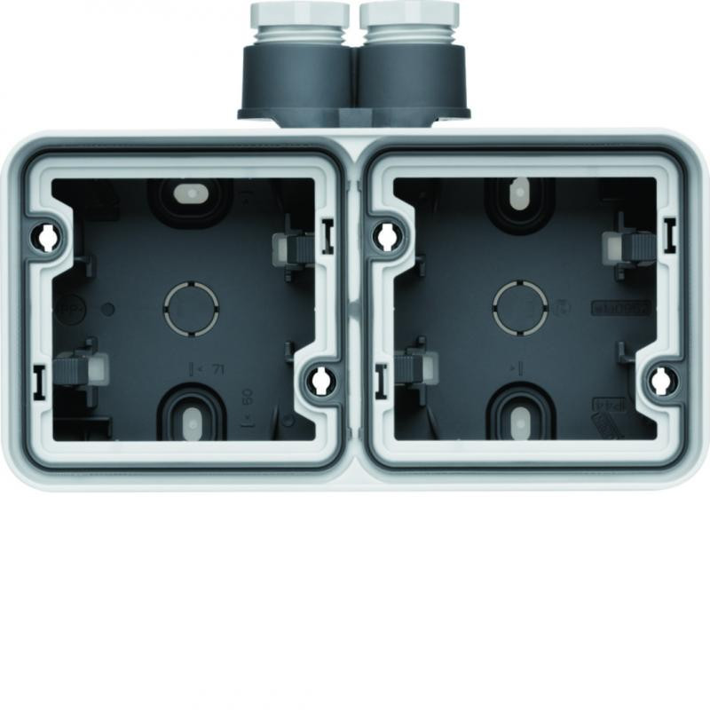 Boîte double horizontale cubyko, grise, 1 x entrée double 2 x PE-M20