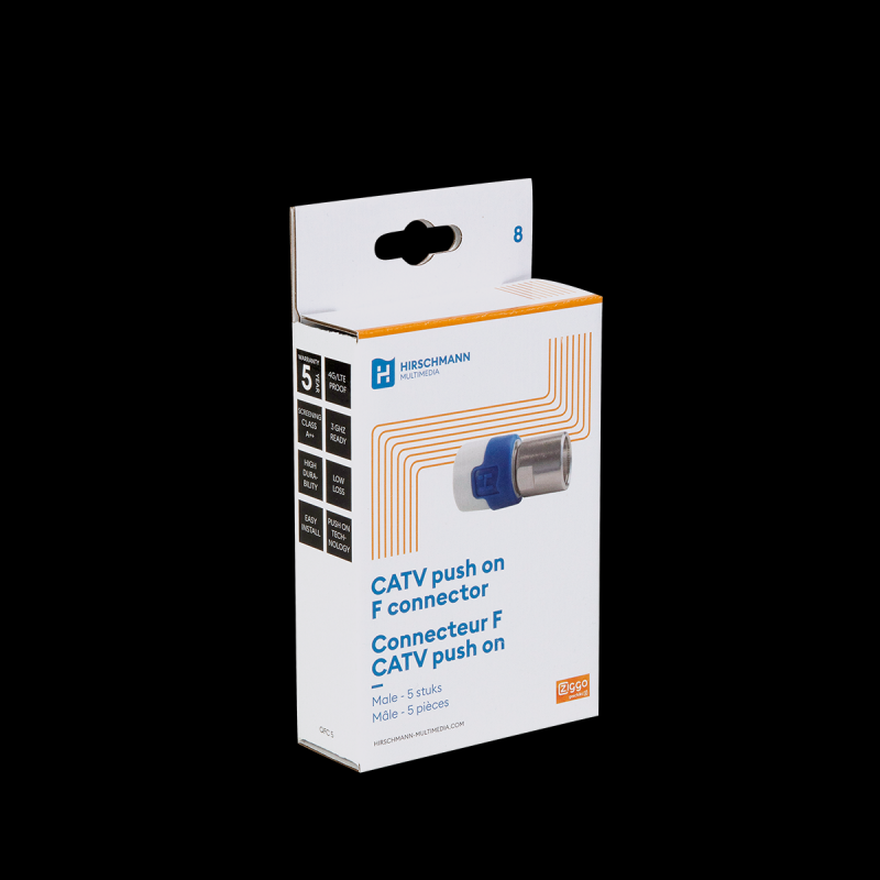 Connecteur F Quick Fix, pour les câbles d'un diamètre compris entre 6,7 mm et 7,1 mm. Prévient des interférences de la 4G/LTE. Par 5 pièces en boîte shop.