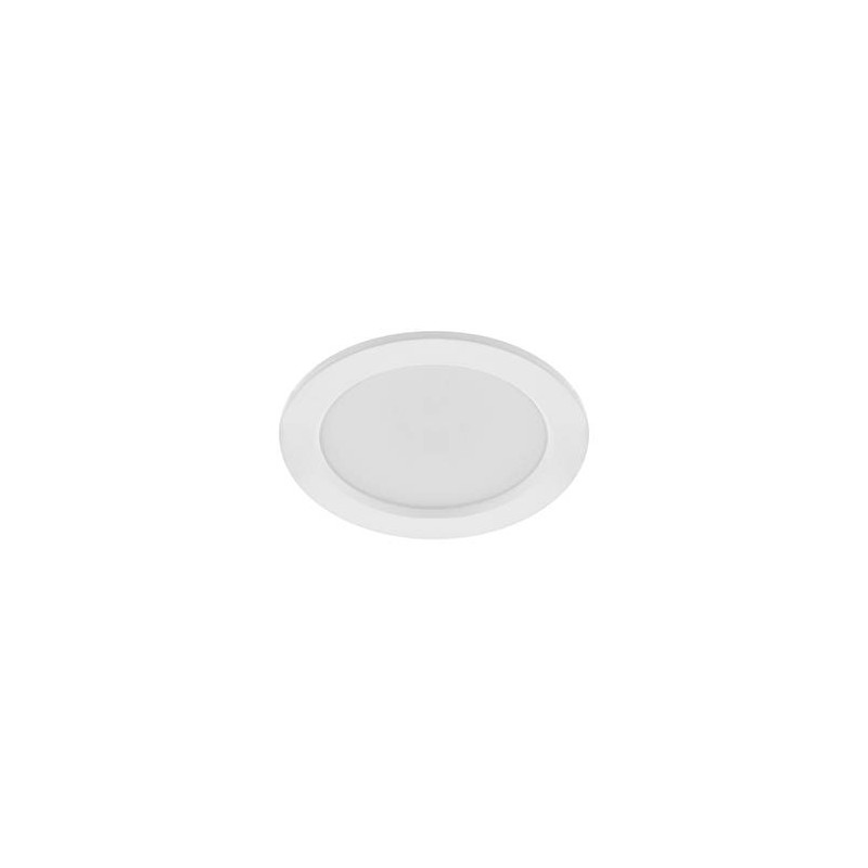 Downlight encastré rond fixe 4 en 1.2700K, 3000K, 4000K ou 6000K au choix à larrière du luminaire.Fixation par ressorts.Peut être recouvert par un isolant.Double bornier automatique.Ne nécessite pas de convertisseur.Dimmable.