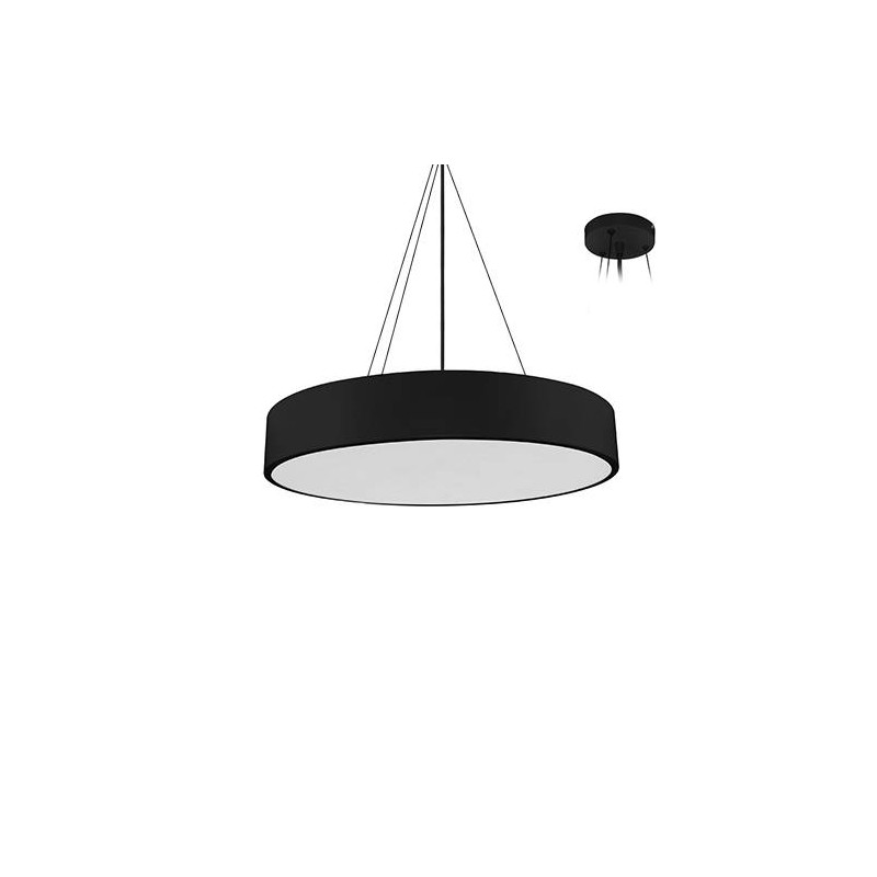 Suspension décorative.Diffuseur en PS opalin.2700K, 3000K ou 4000K au choix dans le luminaire.Livrée avec câbles de suspension noirs réglables 1.50m max, base ronde et câble dalimentation noirs.Convertisseur dimmable intégré.