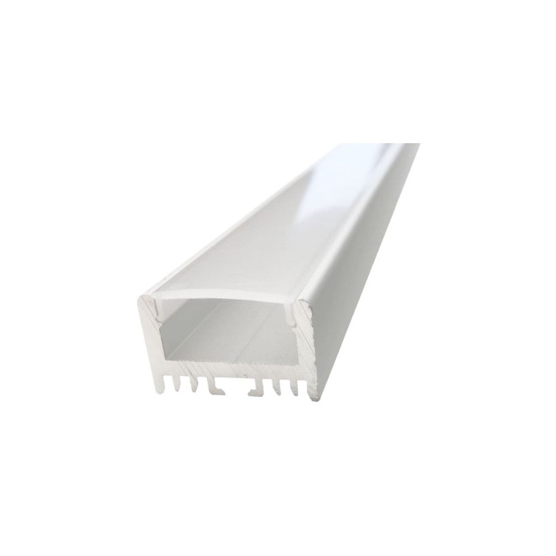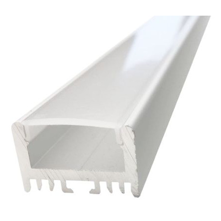 Profile led Baseline en aluminium anodisé AL6063 laqué blanc. Kit complet avec profil led et couvercle opalin en polycarbonate, 4 embouts 2 avec entrée de câble et 4 supports de montage dans un tube en carton pratique et robuste. Longueur 2 mètres, largeur 26 mm et hauteur 17 mm. Capacité de refroidissement jusquà 25W par mètre.