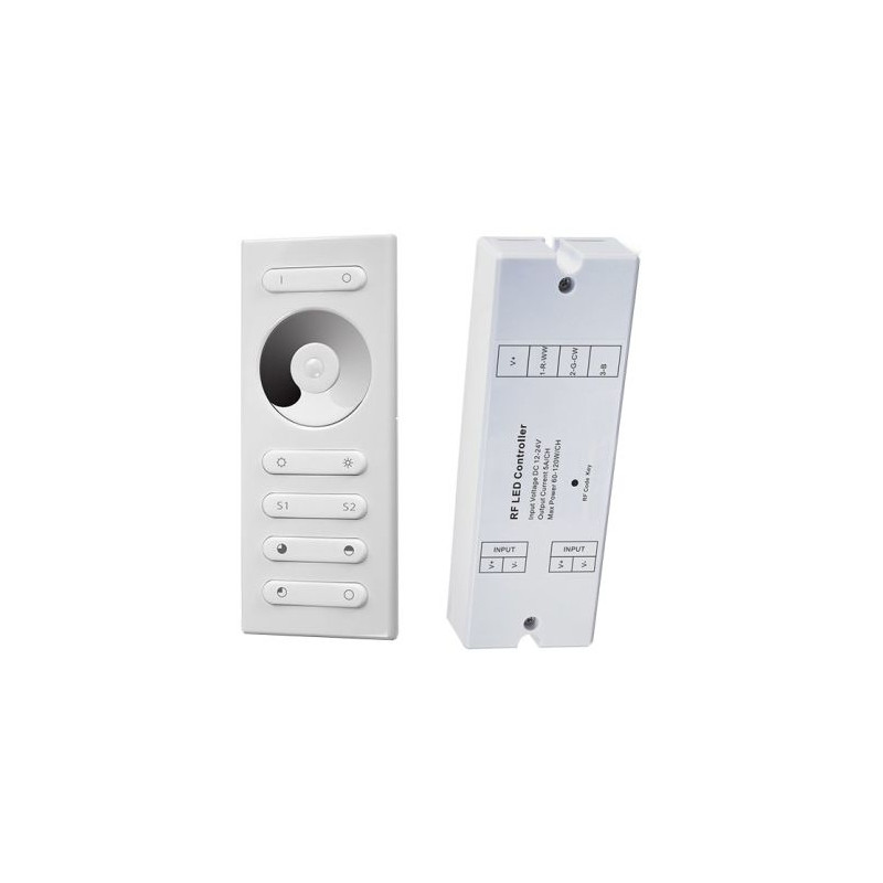 Commande sans fil RF 1 zone pour rubans led monocolor. Kit complet avec emetteur et recepteur. Non extensible. Telecommande alimente avec 3 piles AAA. (non fourni)