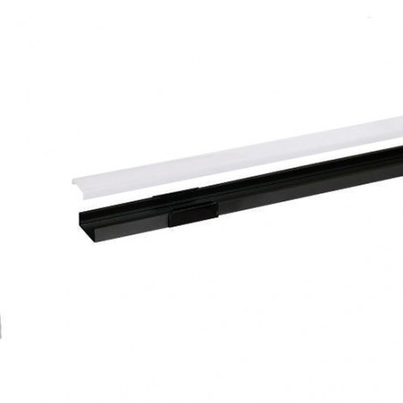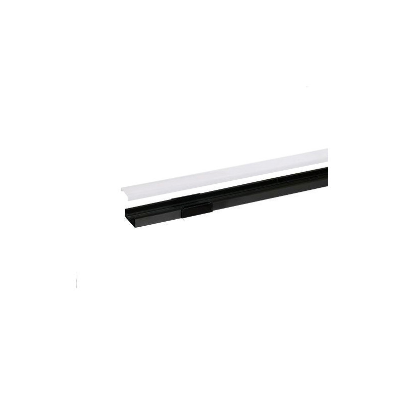 Profile led SL7 en aluminium anodise AL6063 en finition noire RAL9004. Kit complet avec profile led de 2m, couvercle opale en PC, 2 embouts sans entree de cable, 2 embouts avec entree de cable et 4 supports de montage en acier inoxydable L304 dans un tube en carton robuste et resistant.