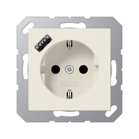 PRISE VERSION SCHUKO ET CHARGEUR USBAVEC OBTURATEURS (SAFETY PLUS)AVEC 1 PRISE USB TYPE AAVEC FONCTION DE CHARGE RAPIDEAVEC CONNEXION AUTOMATIQUE VIS POUR FILS RIGIDES ET SOUPLES NON TRAITES JUSQU'A 2,5 MM?. MONTAGE DANS UNE BOITE D?APPAREILLAGE AVEC DIME