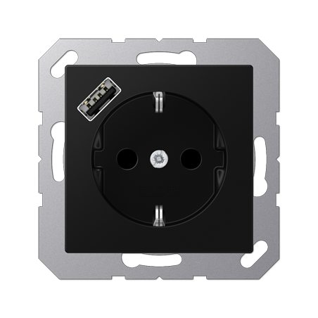 PRISE VERSION SCHUKO ET CHARGEUR USBAVEC OBTURATEURS (SAFETY PLUS)AVEC 1 PRISE USB TYPE AAVEC FONCTION DE CHARGE RAPIDEAVEC CONNEXION AUTOMATIQUE VIS POUR FILS RIGIDES ET SOUPLES NON TRAITES JUSQU'A 2,5 MM?. MONTAGE DANS UNE BOITE D?APPAREILLAGE AVEC DIME