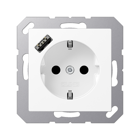PRISE VERSION SCHUKO ET CHARGEUR USBAVEC OBTURATEURS (SAFETY PLUS)AVEC 1 PRISE USB TYPE AAVEC FONCTION DE CHARGE RAPIDEAVEC CONNEXION AUTOMATIQUE VIS POUR FILS RIGIDES ET SOUPLES NON TRAITES JUSQU'A 2,5 MM?. MONTAGE DANS UNE BOITE D?APPAREILLAGE AVEC DIME