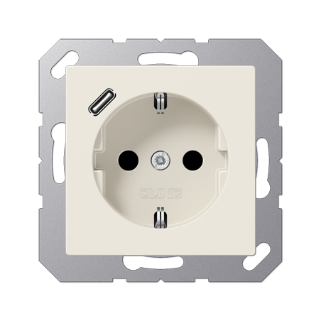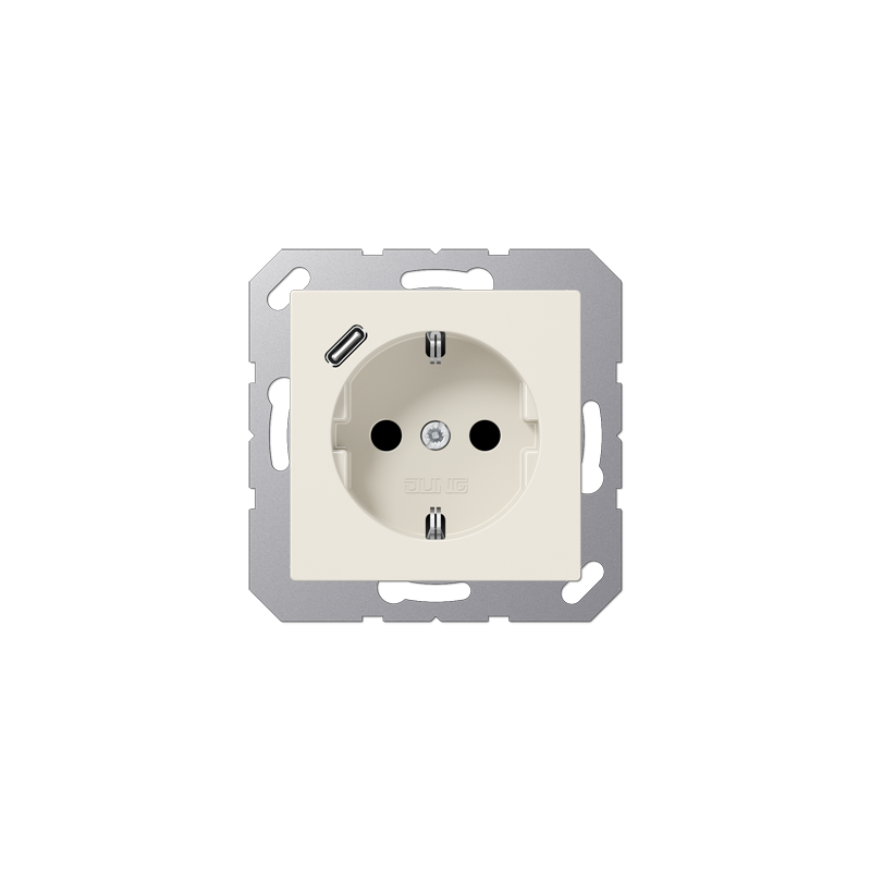 PRISE VERSION SCHUKO ET CHARGEUR USBAVEC OBTURATEURS (SAFETY PLUS)AVEC 1 PRISE USB TYPE CAVEC FONCTION DE CHARGE RAPIDEAVEC CONNEXION AUTOMATIQUE VIS POUR FILS RIGIDES ET SOUPLES NON TRAITES JUSQU'A 2,5 MM?. MONTAGE DANS UNE BOITE D?APPAREILLAGE AVEC DIME