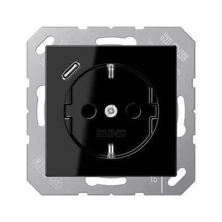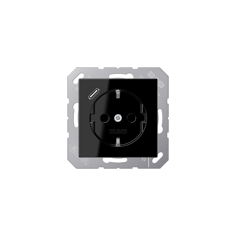 PRISE VERSION SCHUKO ET CHARGEUR USBAVEC OBTURATEURS (SAFETY PLUS)AVEC 1 PRISE USB TYPE CAVEC FONCTION DE CHARGE RAPIDEAVEC CONNEXION AUTOMATIQUE VIS POUR FILS RIGIDES ET SOUPLES NON TRAITES JUSQU'A 2,5 MM?. MONTAGE DANS UNE BOITE D?APPAREILLAGE AVEC DIME