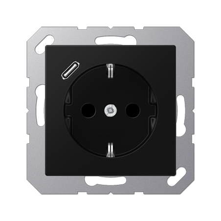 PRISE VERSION SCHUKO ET CHARGEUR USBAVEC OBTURATEURS (SAFETY PLUS)AVEC 1 PRISE USB TYPE CAVEC FONCTION DE CHARGE RAPIDEAVEC CONNEXION AUTOMATIQUE VIS POUR FILS RIGIDES ET SOUPLES NON TRAITES JUSQU'A 2,5 MM?. MONTAGE DANS UNE BOITE D?APPAREILLAGE AVEC DIME