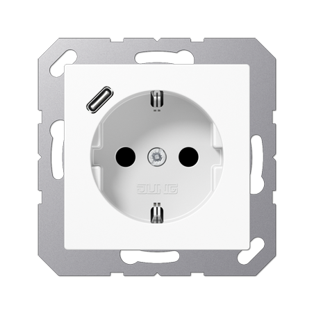 PRISE VERSION SCHUKO ET CHARGEUR USBAVEC OBTURATEURS (SAFETY PLUS)AVEC 1 PRISE USB TYPE CAVEC FONCTION DE CHARGE RAPIDEAVEC CONNEXION AUTOMATIQUE VIS POUR FILS RIGIDES ET SOUPLES NON TRAITES JUSQU'A 2,5 MM?. MONTAGE DANS UNE BOITE D?APPAREILLAGE AVEC DIME