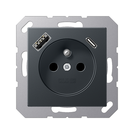 PRISE, SYSTEME FRANCAIS ET BELGE, AVEC CHARGEURS USB2 POLES + T, 16 A 250 V CEE 7/5AVEC OBTURATEURS (SAFETY PLUS)AVEC 1 PRISE USB TYPE A ET 1 PRISE USB TYPE CAVEC CONNEXION AUTOMATIQUE VIS POUR FILS RIGIDES ET SOUPLES NON TRAITES JUSQU'A 2,5 MM?. MONTAGE