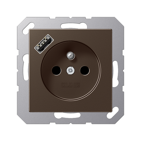 PRISE, SYSTEME FRANCAIS ET BELGE, AVEC CHARGEUR USB2 POLES + T, 16 A 250 V CEE 7/5AVEC OBTURATEURS (SAFETY PLUS)AVEC 1 PRISE USB TYPE AAVEC FONCTION DE CHARGE RAPIDEAVEC CONNEXION AUTOMATIQUE VIS POUR FILS RIGIDES ET SOUPLES NON TRAITES JUSQU'A 2,5 MM?.