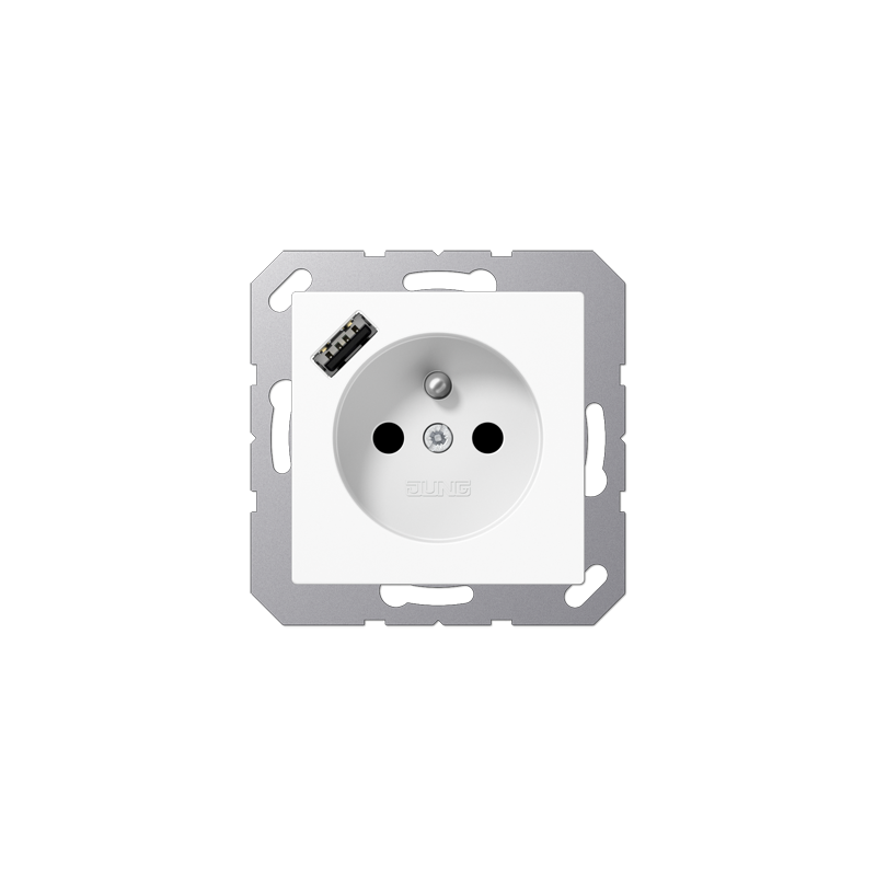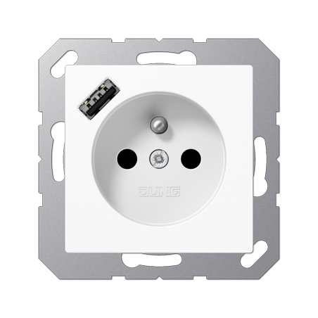 PRISE, SYSTEME FRANCAIS ET BELGE, AVEC CHARGEUR USB2 POLES + T, 16 A 250 V CEE 7/5AVEC OBTURATEURS (SAFETY PLUS)AVEC 1 PRISE USB TYPE AAVEC FONCTION DE CHARGE RAPIDEAVEC CONNEXION AUTOMATIQUE VIS POUR FILS RIGIDES ET SOUPLES NON TRAITES JUSQU'A 2,5 MM?.