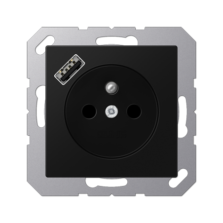 PRISE, SYSTEME FRANCAIS ET BELGE, AVEC CHARGEUR USB2 POLES + T, 16 A 250 V CEE 7/5AVEC OBTURATEURS (SAFETY PLUS)AVEC 1 PRISE USB TYPE CAVEC FONCTION DE CHARGE RAPIDEAVEC CONNEXION AUTOMATIQUE VIS POUR FILS RIGIDES ET SOUPLES NON TRAITES JUSQU'A 2,5 MM?.
