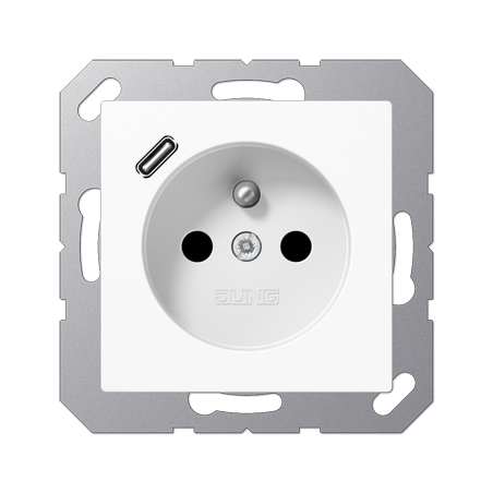 PRISE, SYSTEME FRANCAIS ET BELGE, AVEC CHARGEUR USB2 POLES + T, 16 A 250 V CEE 7/5AVEC OBTURATEURS (SAFETY PLUS)AVEC 1 PRISE USB TYPE CAVEC FONCTION DE CHARGE RAPIDEAVEC CONNEXION AUTOMATIQUE VIS POUR FILS RIGIDES ET SOUPLES NON TRAITES JUSQU'A 2,5 MM?.