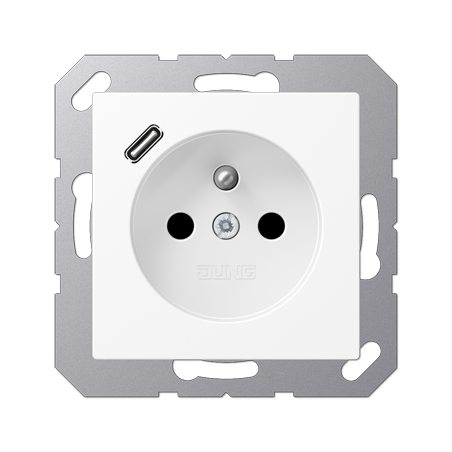 PRISE, SYSTEME FRANCAIS ET BELGE, AVEC CHARGEUR USB2 POLES + T, 16 A 250 V CEE 7/5AVEC OBTURATEURS (SAFETY PLUS)AVEC 1 PRISE USB TYPE CAVEC FONCTION DE CHARGE RAPIDEAVEC CONNEXION AUTOMATIQUE VIS POUR FILS RIGIDES ET SOUPLES NON TRAITES JUSQU'A 2,5 MM?.