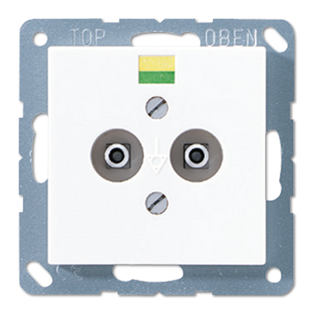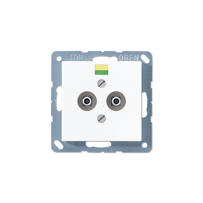 PRISE POUR LIAISON EQUIPOTENTIELLE(AVEC SUPPORT DE FIXATION A VIS)LIVRE AVEC 2 PRISES MALES DIN 42801, POUR CONDUCTEUR JUSQU?A 6 MM?DIMENSIONS : 55 X 55 MMMATERIAU: DUROPLASTIQUE (RESISTANT AUX ERAFLURES) BRILLANTCOULEUR: BLANC