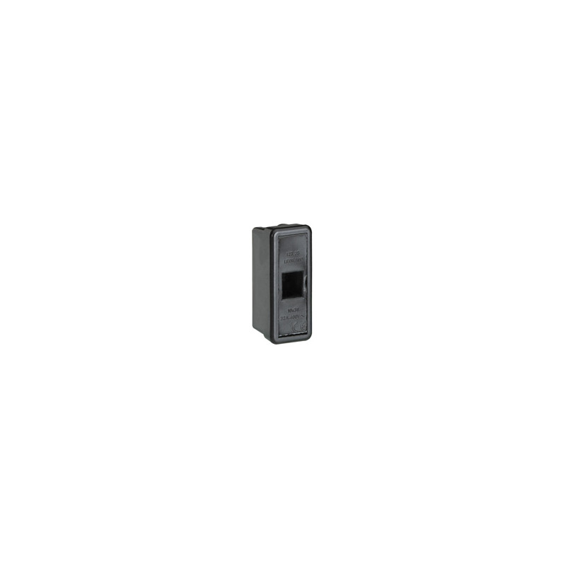 Marque: Legrand Référence: 012335 EAN: 3245060123352 Emballage: 20/200/2400 Description: Adaptateur pour cartouches 10 x 38 - diamètre alvéoles 8,8 mm - dimensions 55 x 24 x 24 mm