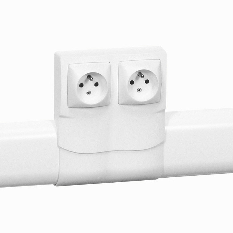 Description: Cadre Oteo double 2 postes - pour plinthes DLP sections 80 x 20 mm et 120 x 20 mm blanc RAL 9003 - 2 compartiments - le long du profile