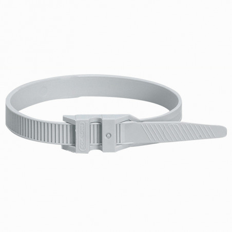 Description: Collier COLSON a denture exterieure - longueur 262 mm - largeur 9 mm - diametre de serrage maxi 62 mm - gris - pour installation interieure