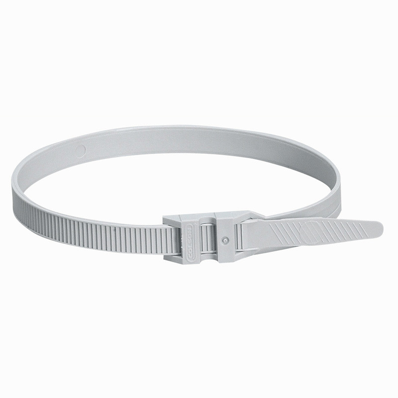 Description: Collier COLSON a denture exterieure - longueur 357 mm - largeur 9 mm - diametre de serrage maxi 92 mm - gris - pour installation interieure