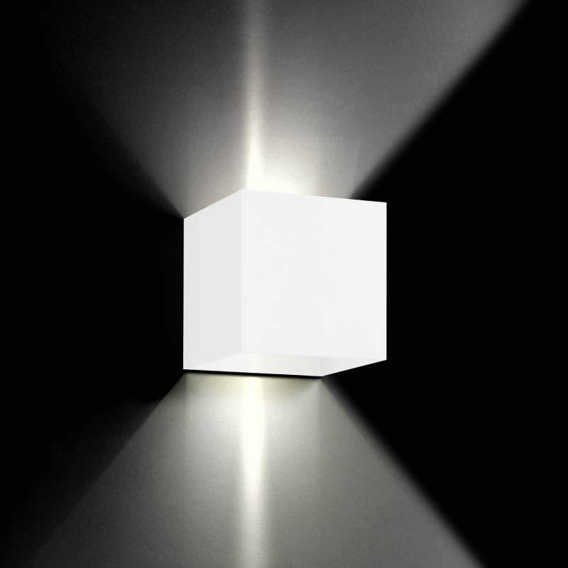 Luminaire mural en saillie carrée en aluminium surface en Blanc mat revêtement par poudre structure de surface mate RAL 9010 distribution de lumière directe/indirecte PCB 3-step binning coupure de phase dim couleur de lumière 2700 K CRI