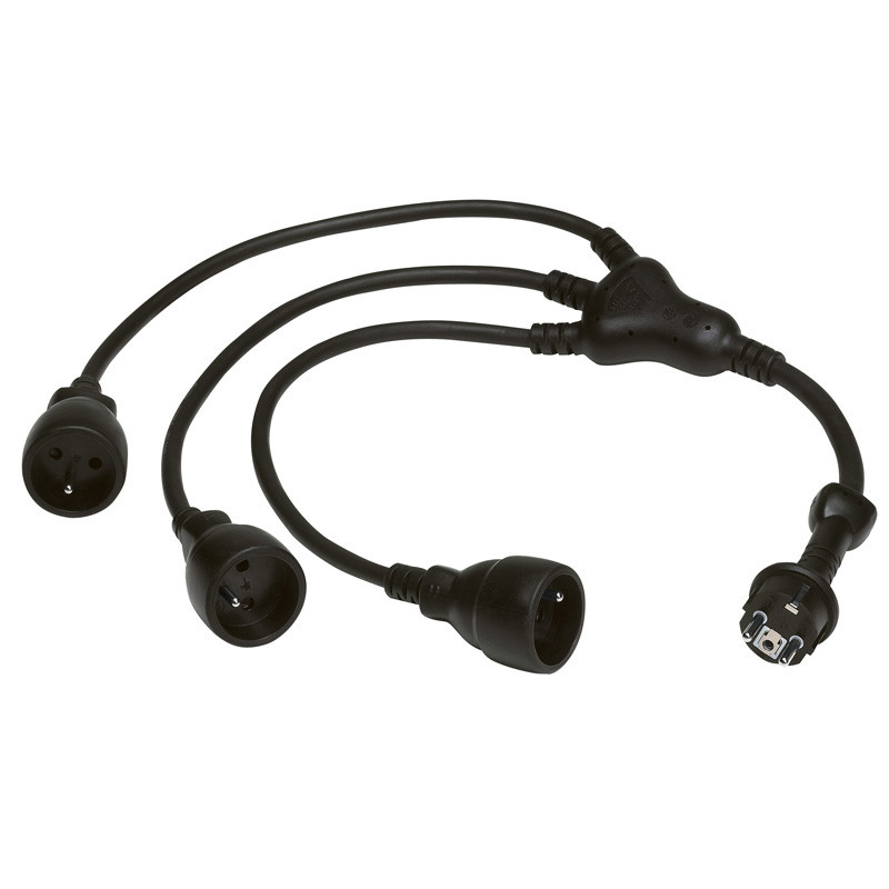 Description: Fiche et prolongateur en caoutchoux - Rallonge multiprises pieuvre prete a l'emploi - 3prolongateurs 2PT 16A - IK10 - longueur 08m