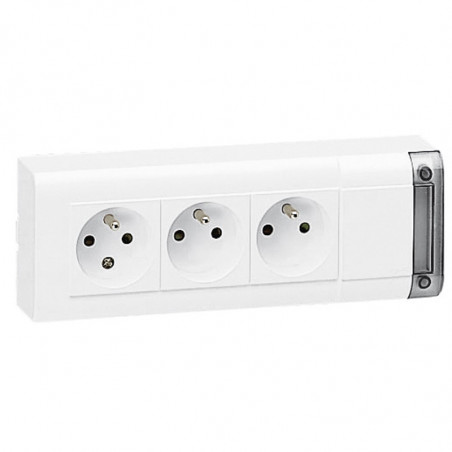 Description: Bloc multiprises d'installation standard - 3 prises 2 P T avec securite - 1016 A - 3500 W en 250 V - blanc - sans cordon - esthetique Mosaic
