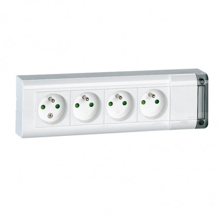 Description: Bloc multiprises d'installation avec inter bipolaire a voyant - 4 prises 2 P T avec securite - 1016 A - 3500 W en 250 V - blanc - sans cordon