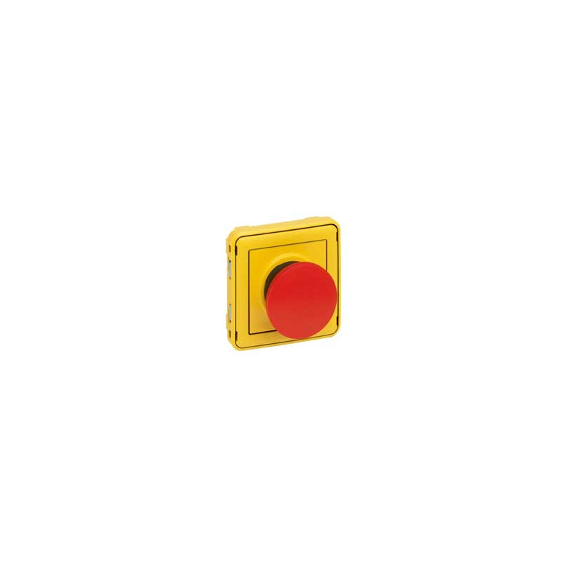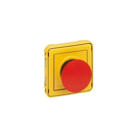Description: PLEXO composable poussoir a impulsion arret coupure d'urgence - 1 contact NF - capot jaune - bouton rouge - 3 A - 250 V - IP 55
